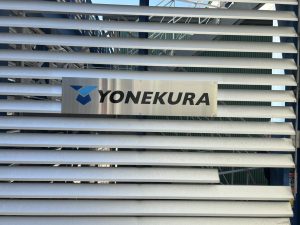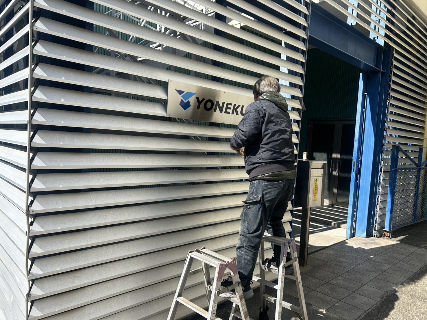 玄関前のサイン工事として、ステンレス面に企業マークと社名をデザインしたシートを施工いたしました。